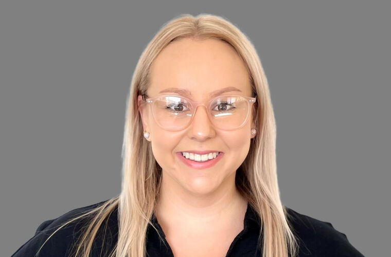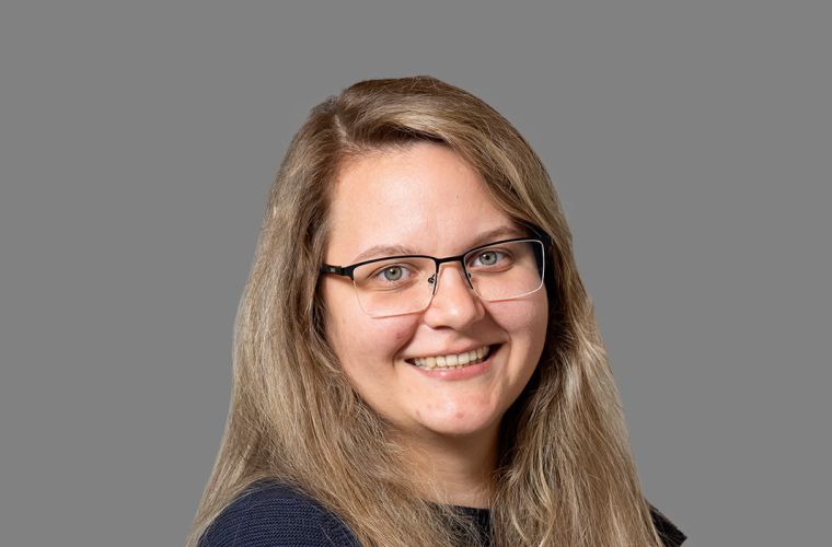 Johanna Vasconcelos Alves, mit offenen Haaren und Brille, in die Kamera lächeln.